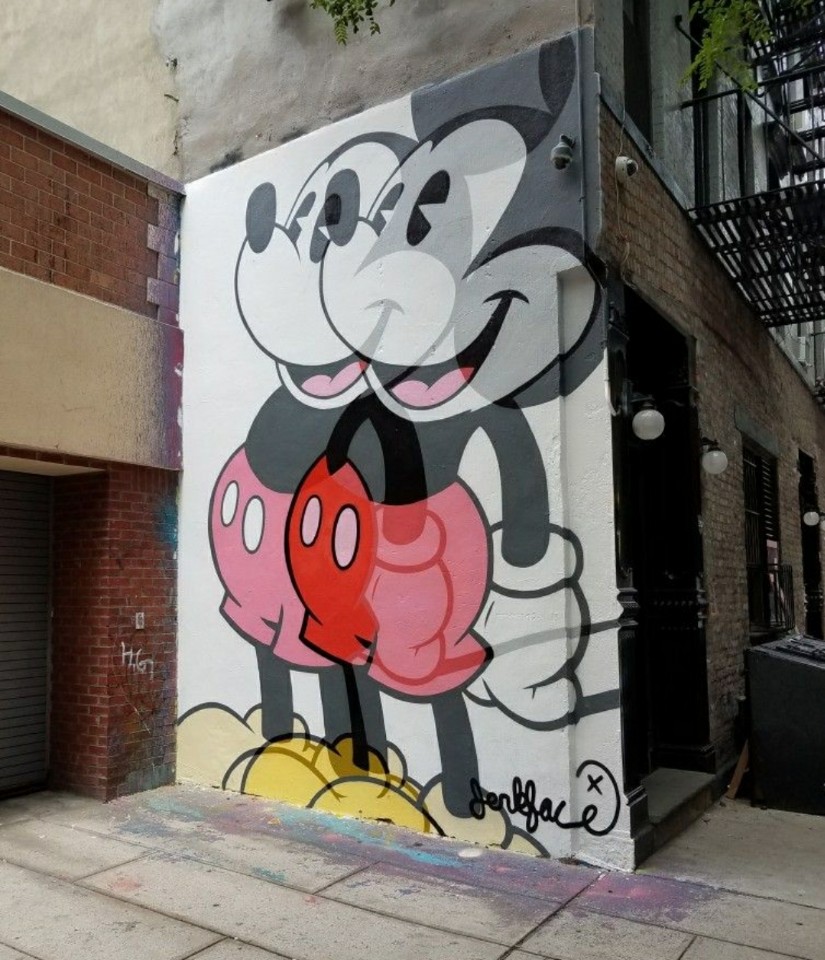 아래는 로어맨허튼에 그린 미키마우스 그래피티인데요, 제가 요즘 관심을 갖고 있는 그래피티 아티스트인 Jerkface입니다. 투명한 레이어를 겹쳐 그린 캐릭터가 트레이드마크이지요.