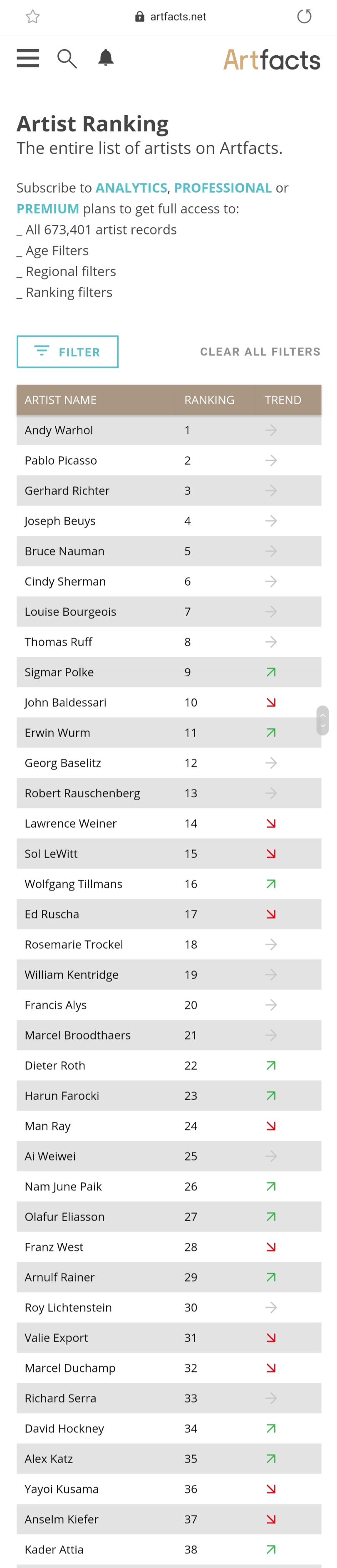 마지막으로 artfacts의 아티스트 랭킹으로 이번 블로그를 마무리 할께요~