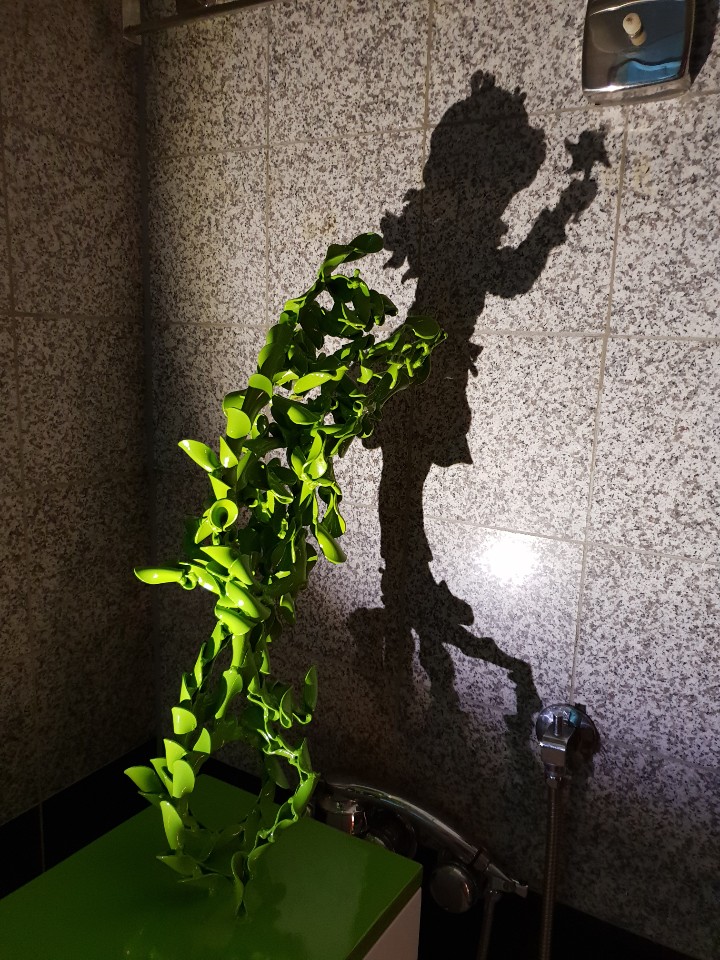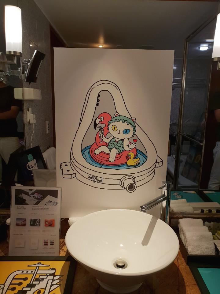 객실의 모든 공간에서 전시가 이루어 집니다. 침대, 탁자, 바닥은 물론 화장실에도 작품들이 설치되어 있죠.