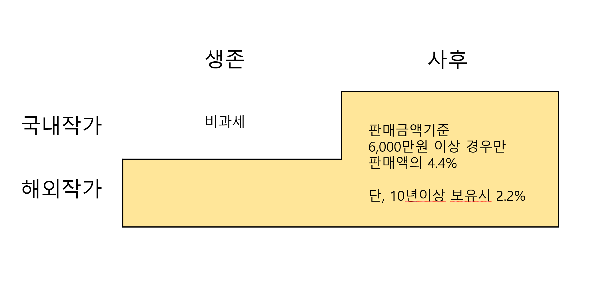 예) 아직도 작품활동을 하시는 박서보 작가의 작품은 세금이 없지만, 고 유영국 작가의 작품에는 기타소득세가 붙습니다.