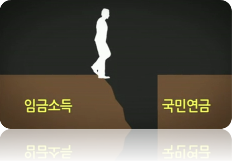 생애 주된 직장(직업)에서 퇴직한 사람 가운데 절반이 '40대 후반 ~ 50대 초반'에 퇴직하며, 이들이 국민 연금 받는 시점까지 '소득 크레바스'기간은 평균 12.5년으로 조사되었다.