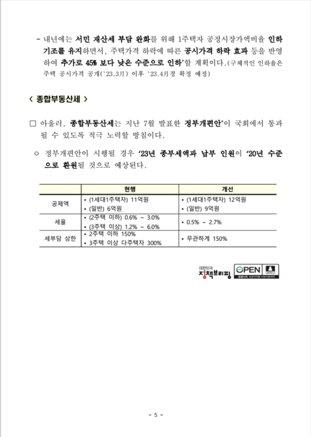 종합부동산세 기본공제금액이 6억원에서 9억원으로 상향된다.