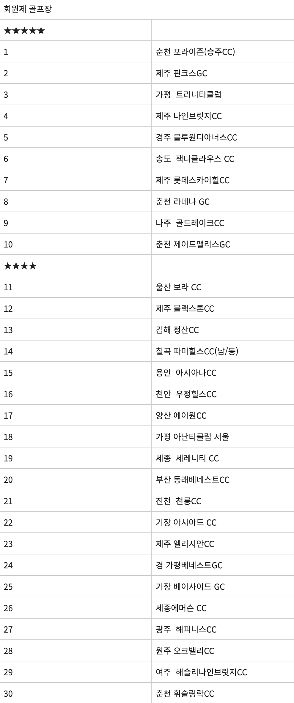 [MK 대한민국 골프장 평가] 전국 회원제 골프장 순위 - 매일경제
